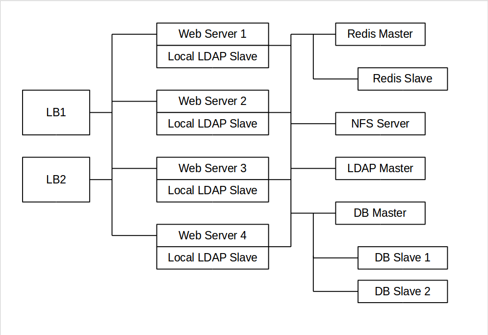- 1 HAproxy load balancer with two sockets and 16GB RAM.
